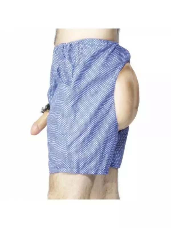 Ce caleçon de couleur bleue fait croire que les fesses et le zizi de l’homme sont à découvert.